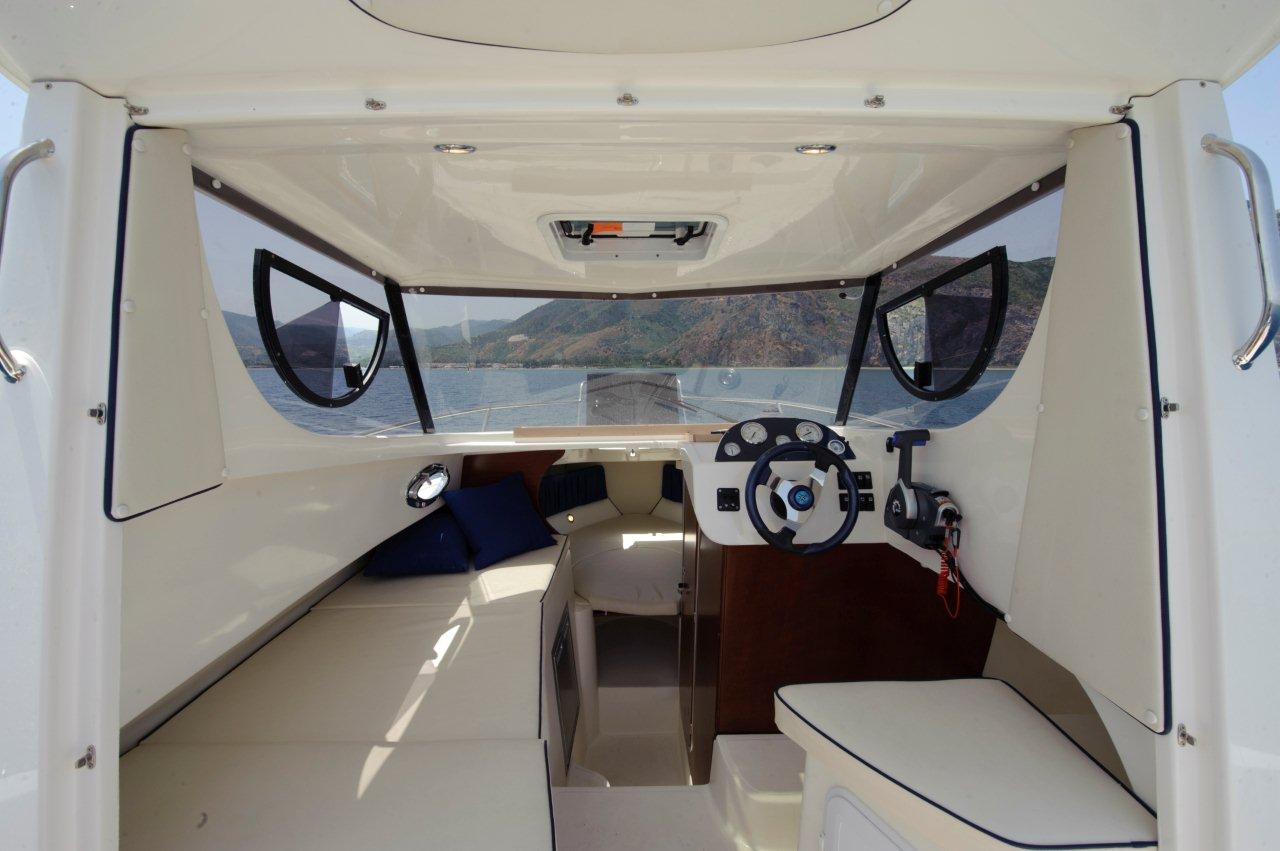 Eolo propose avec le 725 Top Fishing, un timonier idéal pour la pêche avec un cokpit très dégagé, mais également armé pour la croisière à 4: