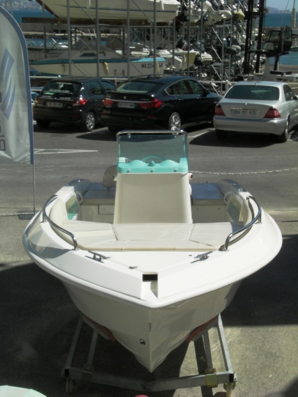 Il est très économique (5 litres/h) et très vif avec le 50cv (carène étudiée pour un 40cv), et très confortable dans la mer (étrave tulipée)