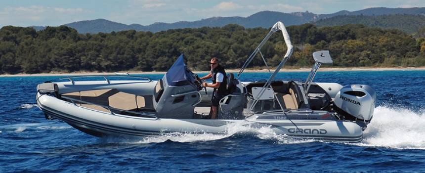Dans la gamme des semi-rigides, le Grand 750 est doté d'une des meilleures carènes permettant au bateau de naviguer confortablement en toute sécurité.