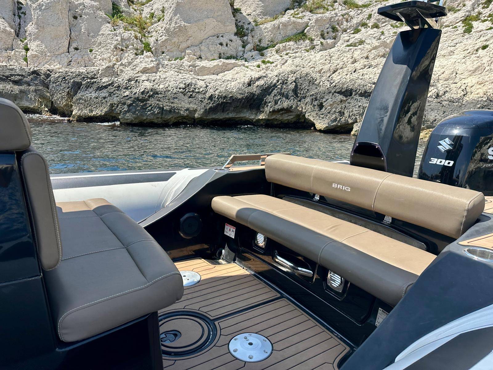 Offrez-vous une expérience inoubliable à bord du BRIG Eagle 8, un semi-rigide haut de gamme alliant sportivité, confort et sécurité. Motorisé par un puissant Suzuki 300 cv V6 4.0L, ce bateau vous garantit des performances remarquables tout en assurant une navigation fluide et agréable.