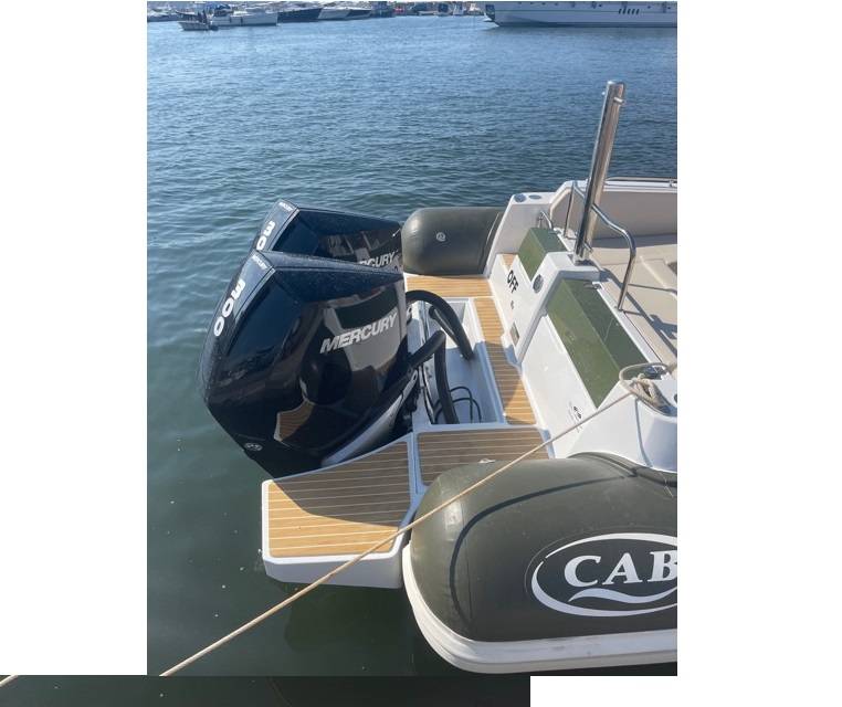 Il est équipé de deux moteurs de 300cv Mercury avec toutes les dernières technologies qui lui permettent d'atteindre les 50 noeuds dans un confort absolument incroyable.