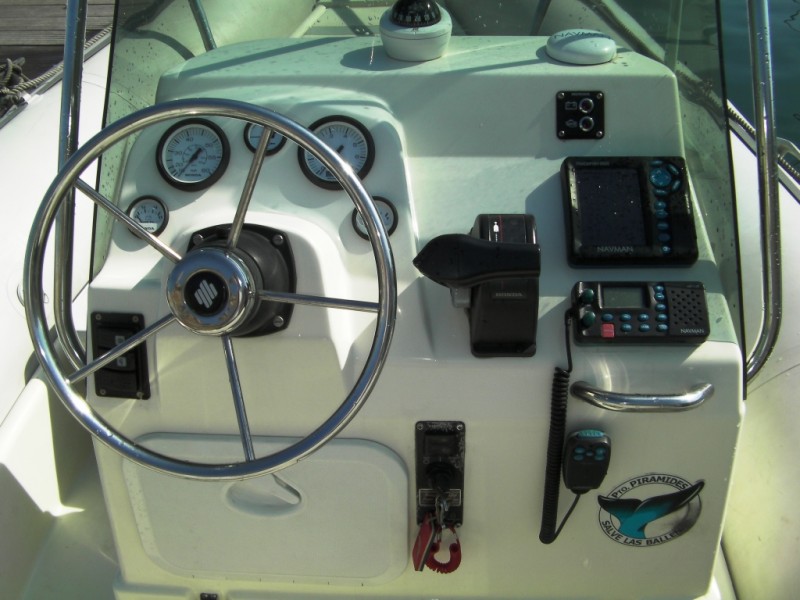 Bain de soleil avant, large console protectrice, douchette , gps lecteur de carte couleur et vhf :tout pour de superbe ballade!