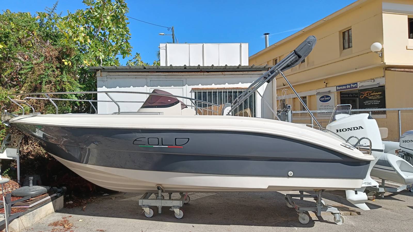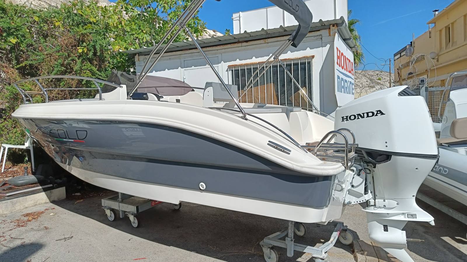 Bleu Calanque met en vente un Eolo 590 2022 neuf en déstockage à saisir avec un 150 CV Honda garanti 10 ans.
