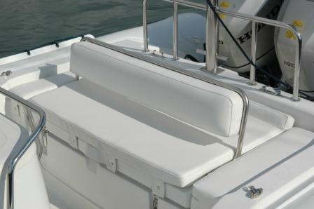 Console haute assurant une parfaite protection, nombreux rangements, sondeur, Douchette, Guindeau electrique avec compteur de chaine, Bain de soleil avant et arrière, planché teck, Large plateforme de bain arrière, echelle de bain inox, mat de ski inox